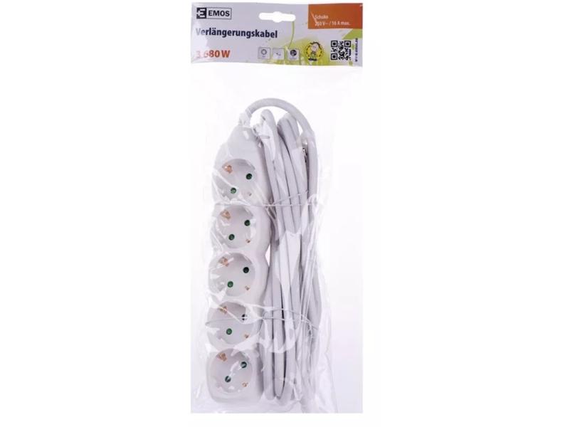 Emos P1525R 5 aljzat 5méter 1,5mm2 kapcsolós fehér hosszabbító
