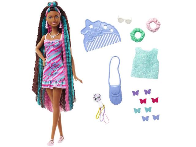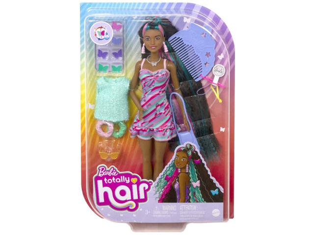 A Barbie Totally Hair pillangó témájú Barbie baba a harminc évvel ezelőtti bestseller Barbie baba ihlette, amely saját frizurával, hajszerkezettel és divatos megjelenéssel rendelkezik! A babának extra hosszú haja van, és több mint tizenöt kiegészítő darabot tartalmaz, köztük nyolc színváltó hajcsatot, formázó kiegészítőket és egy extra divatot. A Barbie baba eredeti testalkattal rendelkezik, és rózsaszín és ciánkék csíkokkal van ellátva egész göndörített haján. Elegáns, testhezálló ruhát visel, melyen mindenhol pillangó mintás minta látható. A gyerekek imádni fogják a különböző frizurák elkészítését és a végtelen styling lehetőségeket!