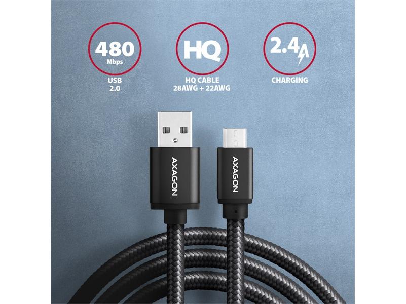 Az Axagon BUMM-AM20AB micro USB 2.0 B - USB 2.0 A 2 m fekete kábel leírása: