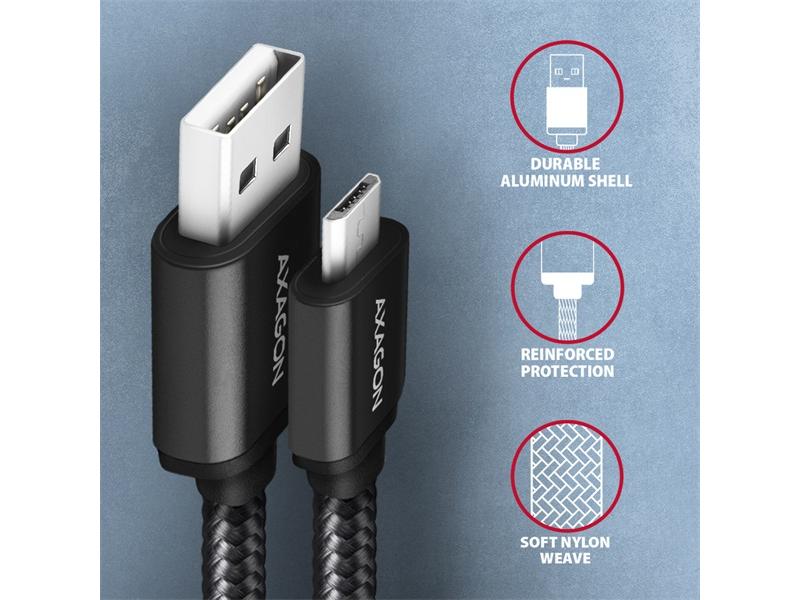 Axagon BUMM-AM20AB micro USB 2.0 B - USB 2.0 A 2 m fekete kábel