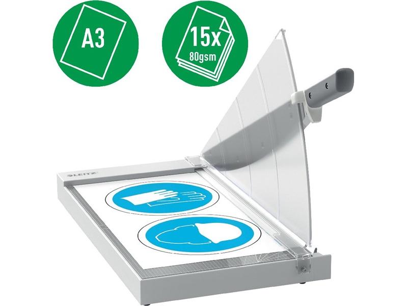 A Leitz Precision Office A3 papírvágó tökéletes általános irodai használatra, papír, címkék, fólia, fényképek, laminált anyagok és kartonlap vágásához.