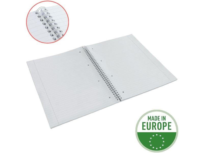 A4 méretű, vonalas jegyzetfüzet mindennapos használatra. Spirálkötés, 80 lap/160 oldal. Modern és friss dizájn.