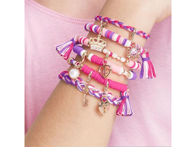 Minden kislány kezén jól állnak az ékszerek, főleg a karkötők, hiszen a szép színes elemek kiemelik a kicsiket és különlegesen érzik magukat. Ezzel a szettel a kislányok kreativitásukat tudják előtérbe hozni, hiszen az ékszerkészítés nagyszerű, kreatív játék. A Juicy Couture egy egyedi stílust vezet be a gyermekek körében, mivel a kis karkötőkre medálokat és színes gyöngyöket lehet akasztani. A készletben levő 372 elemből összesen 6 karkötőt tudsz készíteni, amelyeket különböző alkalmakkor viselhetsz.