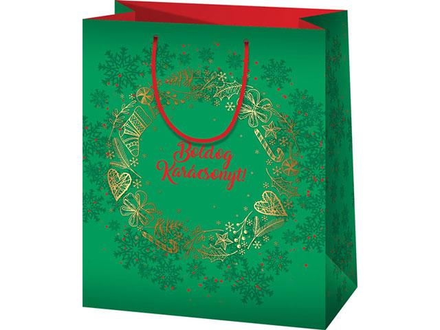 Boldog karácsonyt, zöld nagy méretű ajándéktáska 27x14x33cm