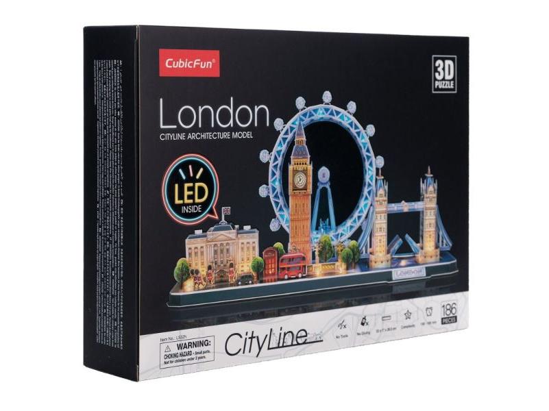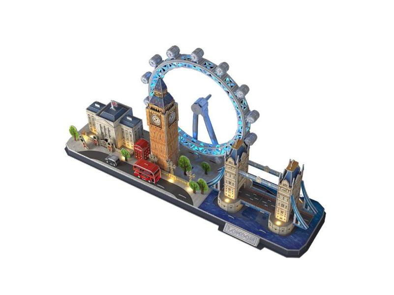 Aki Londonban jár, szinte kötelező jelleggel meglátogatja a Buckingham-palotát, megnézi a Tower Bridge-t, és a London Eye-on körözve gyönyörködik a Big Ben-ben. A CubicFun lehetőséget teremt, hogy ennek a csodálatos európai városnak a látképe az otthonokba költözzön. A London látképe háromdimenziós puzzle összerakásához nincs szükség ollóra és ragasztóra, az elemek egyszerűen összeilleszthetők. A csomagban található képes összeállítási útmutató segítséget nyújt a kirakós tulajdonosainak, hogy a lenyűgöző látképmodellt meg tudják konstruálni. Az összeillesztés után a LED fény bekapcsolásával a puzzle kivilágítható, így akár a szoba hangulatos dekorációs elemévé is válhat.