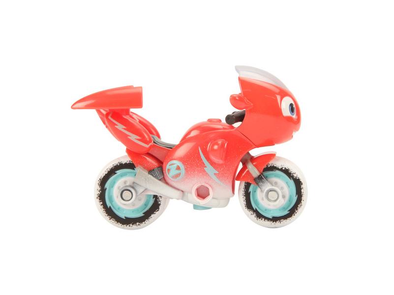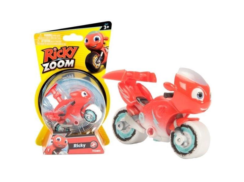 A Ricky Zoom animációs sorozatból ismert piros robogó, Ricky új kalandokra hívja a legkisebb motorosokat! A mini motor gurítható, kereke több irányba mozgatható. Minden karakternek egyedi megjelenése és kiegészítője van. Ebben a csomagban Ricky fehér, téli gumiabroncsokkal rendelkezik, csomagtartója levehető. A gyerekek eljátszhatják a mesében látott jeleneteket vagy újakat alkothatnak a szereplőkkel.