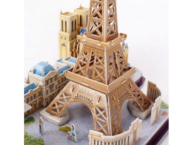 Aki Párizsban jár, szinte kötelező jelleggel meglátogatja az Eiffel-tornyot, megnézi a Notre Dame-ot és készít néhány képet az Arc de Triomphe-ról, azaz a Diadalívről. A CubicFun lehetőséget teremt, hogy ennek a csodálatos európai városnak a látképe az otthonokba költözzön. A Párizs látképe háromdimenziós puzzle összerakásához nincs szükség ollóra és ragasztóra, az elemek egyszerűen összeilleszthetők. A csomagban található képes összeállítási útmutató segítséget nyújt a kirakós tulajdonosainak, hogy a lenyűgöző látképmodellt meg tudják konstruálni. Az összeillesztés után a LED fény bekapcsolásával a puzzle kivilágítható, így akár a szoba hangulatos dekorációs elemévé is válhat.