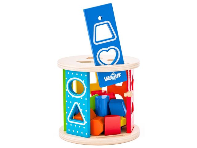 Kisbabád számára keresel egy formaválogatót? A woodyland hengeres szettje lehet a legjobb választás, hiszen méretének köszönhetően a legkisebbek is könnyen tudják majd használni. Fa anyaga nagyon strapabíró és biztonságosan használható, ráaádsul oldalsó falait ki lehet szedni belőle, fedelén keresztül pedig ügyesen be lehet dobálni a formákat a megfelelő lyukakba. Ez mind motorikus mozgását és gondolkodását is fejleszti, élénk színeivel pedig nagyon mókás.