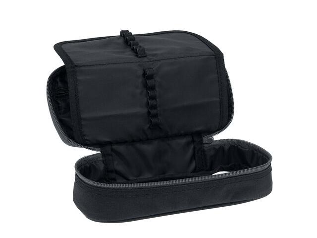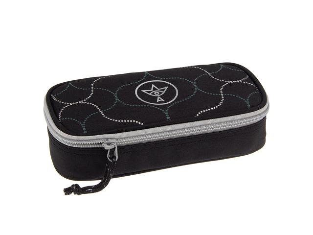 Fekete-ezüst színű lekerekített tolltartót szerezhetsz be a sulira gyermeked számára, amely kihajtható belső füllel rendelkezik és ennek köszönhetően összesen 22db gumi tartó található benne, így könnyedén szortírozhatók az írószerek. A tolltartó 21cm-es hosszúságának köszönhetően akár egy vonalzó, körző is kényelmesen elférhet benne a további írószerek mellett. A tolltartó 100% poliészter anyagból készült amelynek köszönhetően könnyedén tisztítható és strapabíró. A cipzáras belső zsebben gyermeked akár a kisebb dolgokat is biztonságosan tárolhatja.