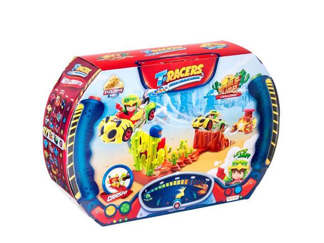 A T-Racers egy rövid epizódokból álló animációs sorozat, amelyben a versenyzők izgalmas versenyeken mérik össze a tudásukat a legkülönfélébb járgányokkal. A gyerekek most eljátszhatják ezeket a kalandokat, vagy akár újakat is kitalálhatnak, hiszen a Sasjárgány kilövőpálya játékszettben minden megtalálható, ami szükséges. A szettben található kilövő óriási sebességgel lövi ki a versenyzőt, akinek az a feladata, hogy átugrasson a szúrós kaktuszok felett. Egyszerűnek hangzik, de nem olyan könnyű dolog ez, pontos célzásra és összpontosításra lesz szükség a sikerhez.