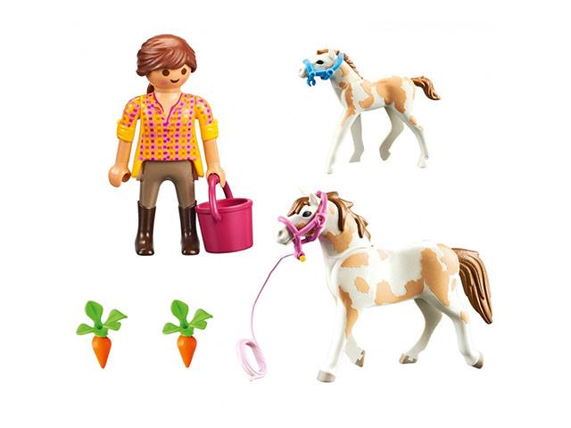 Ez a Playmobil szett elnyeri a gyerekek tetszését hiszen a lovakat imádják a gyerekek. Ha már rendelkezel egy lovardával, akkor egy lóra és egy csikóra lesz szükséged, hogy ezekre vigyázz és felneveld és mindkettőt ebben a szettben megtalálod. A csomag két kötőféket is tartalmaz, amelyre a vezetőkötél rögzíthető. Egy Playmobil figura is helyet kapott, mivel valakinek etetnie kell az állatokat. A Playmobil figurák és kiegészítők kompatibilisek egymással így a gyerekek szabadon variálhatják őket, hogy egy igazi, színes és változatos világot alkossanak meg általuk, amelyekben a legkülönösebb történeteket is el lehet játszani.