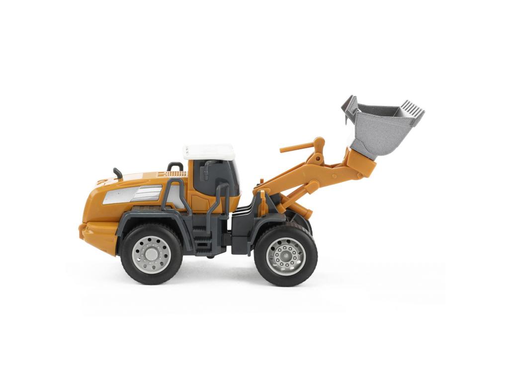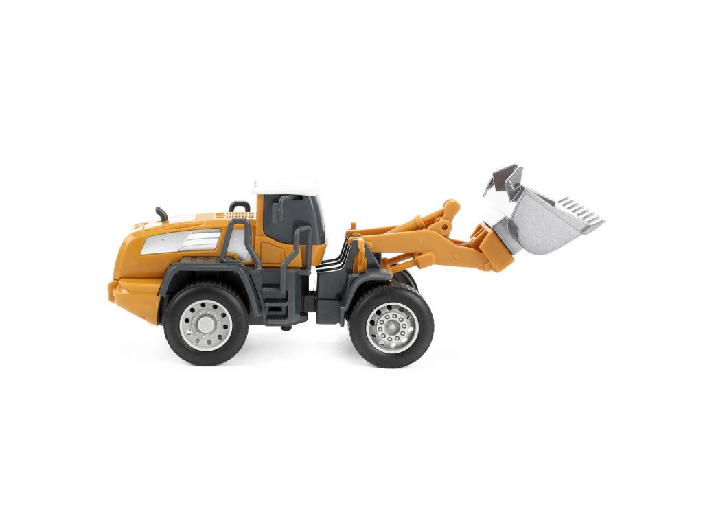Ez az erős és robusztus, 1:55 méretarányú modell egy kerekes rakodóról készült, és főként fémből készült. A karosszéria mozgatható. Így ez az építőipari jármű könnyedén elvégzi a nehéz munkákat az építkezésen.
