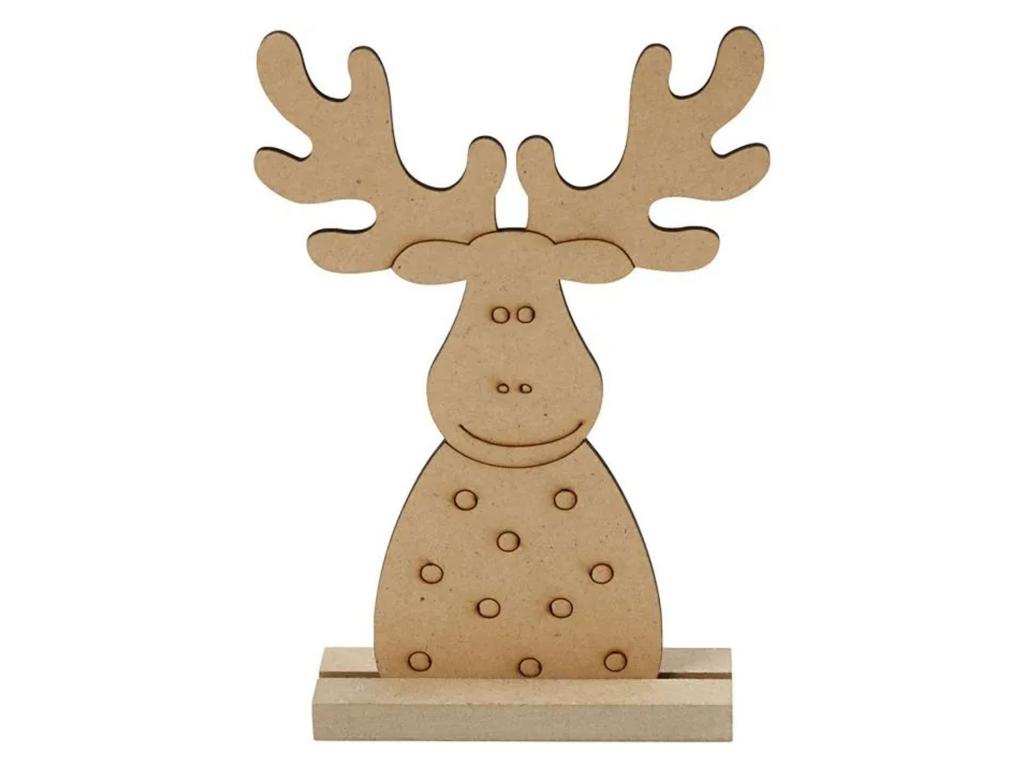 Rénszarvas alakú karácsonyi fafigura. Díszítsd tetszőleges színnel és technikával és készíts egy gyönyörű műalkotást! Fafajta: MDF, Méretek: 15x11x3cm