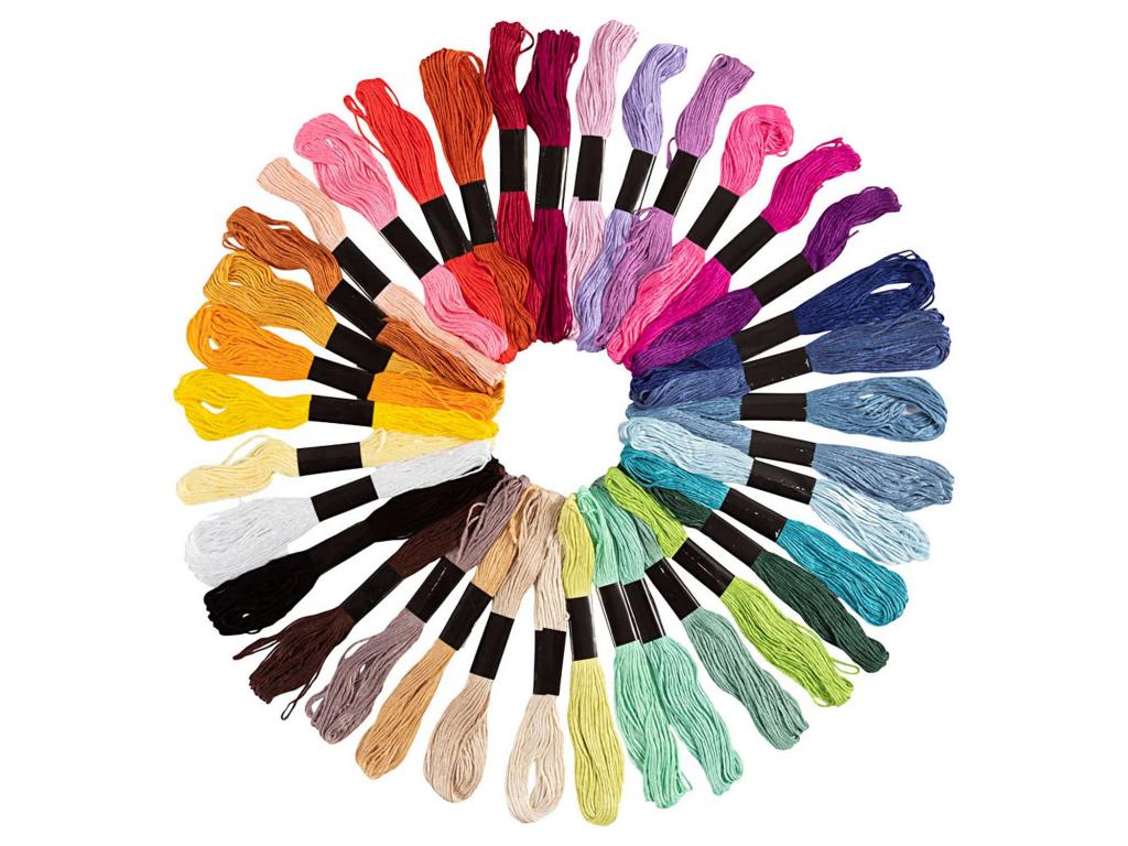 42 különböző színű, egyenként 8 m hosszú, 6 szálból álló hímzőfonal választék, nagyon finom minőségben - 100% mercerizált pamut.