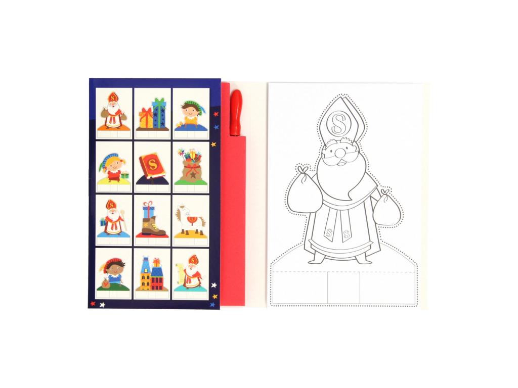 Szent Miklós (Mikulás) témájú kifestő és lyukasztó tömb. 12 kifestőt és lyukasztó eszközt is tartalmaz.