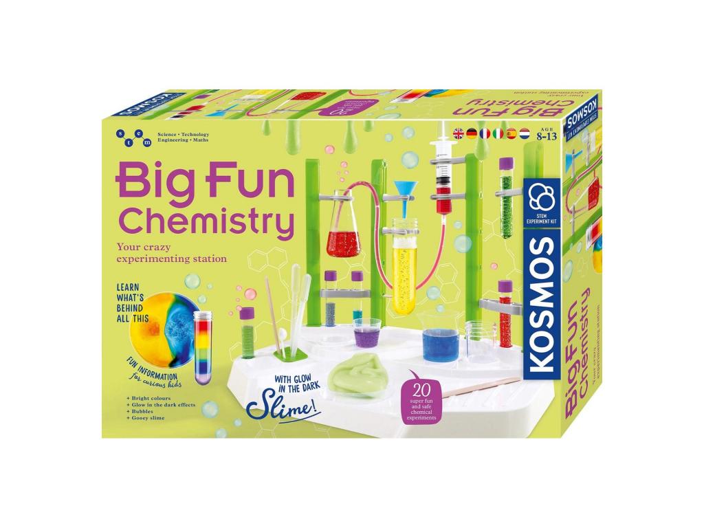A készletben (17 db-os kémiai állomás tartozékokkal) minden olyan laboratóriumi eszköz megtalálható, mint a kémcsövek, a mérőpoharak és a pipetták, amelyekre egy igazi vegyésznek szüksége lehet.