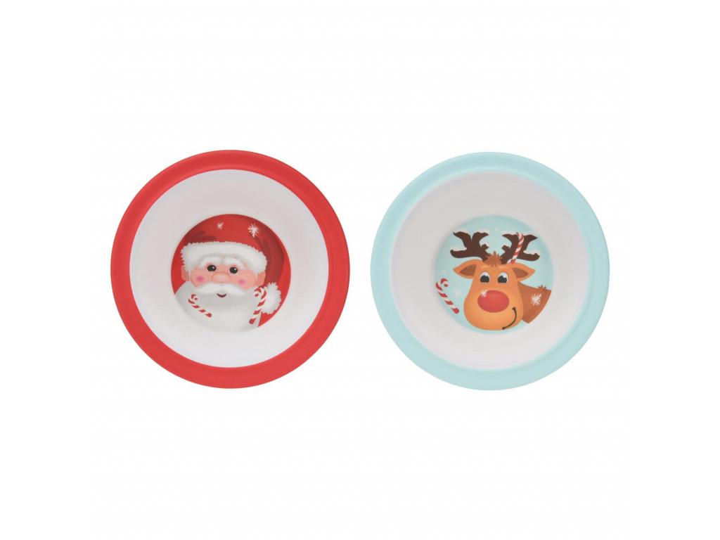 Melaminból készült karácsonyi tálak 400 ml űrtartalommal. Két változatban kapható: Piros színben a Mikulással és mentazöld színben a rénszarvasokkal. Mosogatógépben mosható, nem használható a sütőbe vagy a mikrohullámú sütőbe.