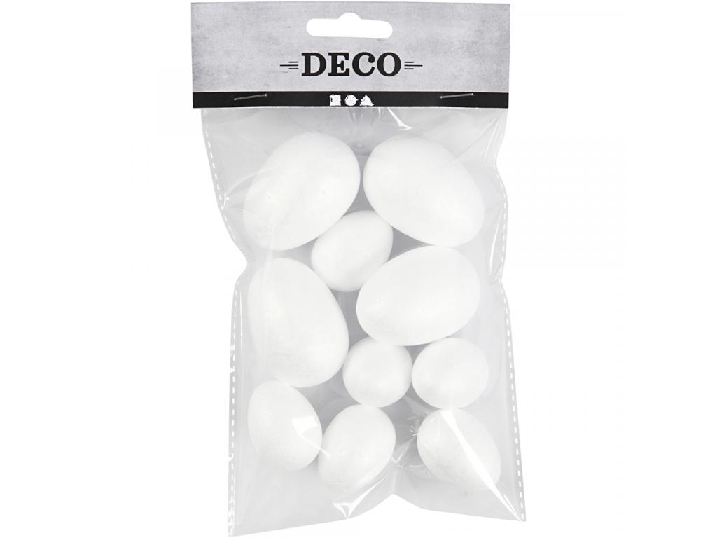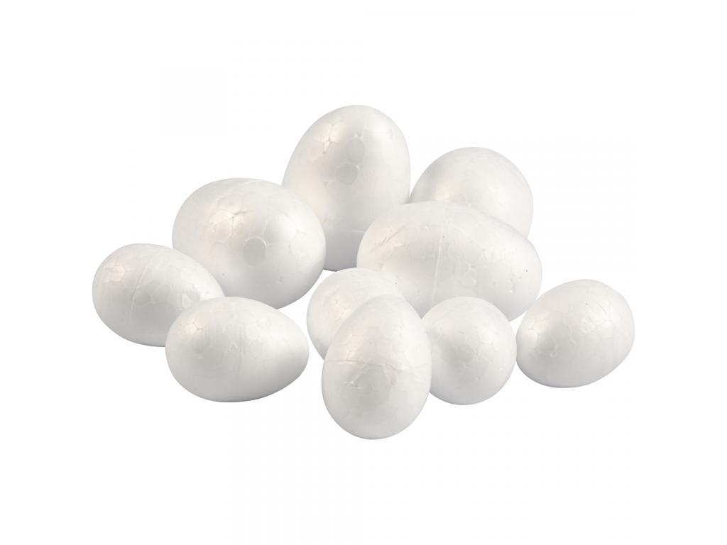 Hungarocell tojás, fehér, 10 darab, 6 kicsi (35x25 mm) és 4 nagy (48x35 mm) tojás.