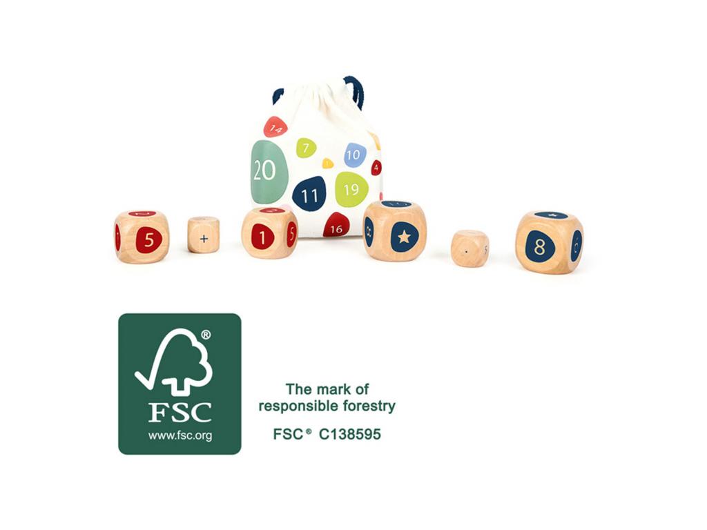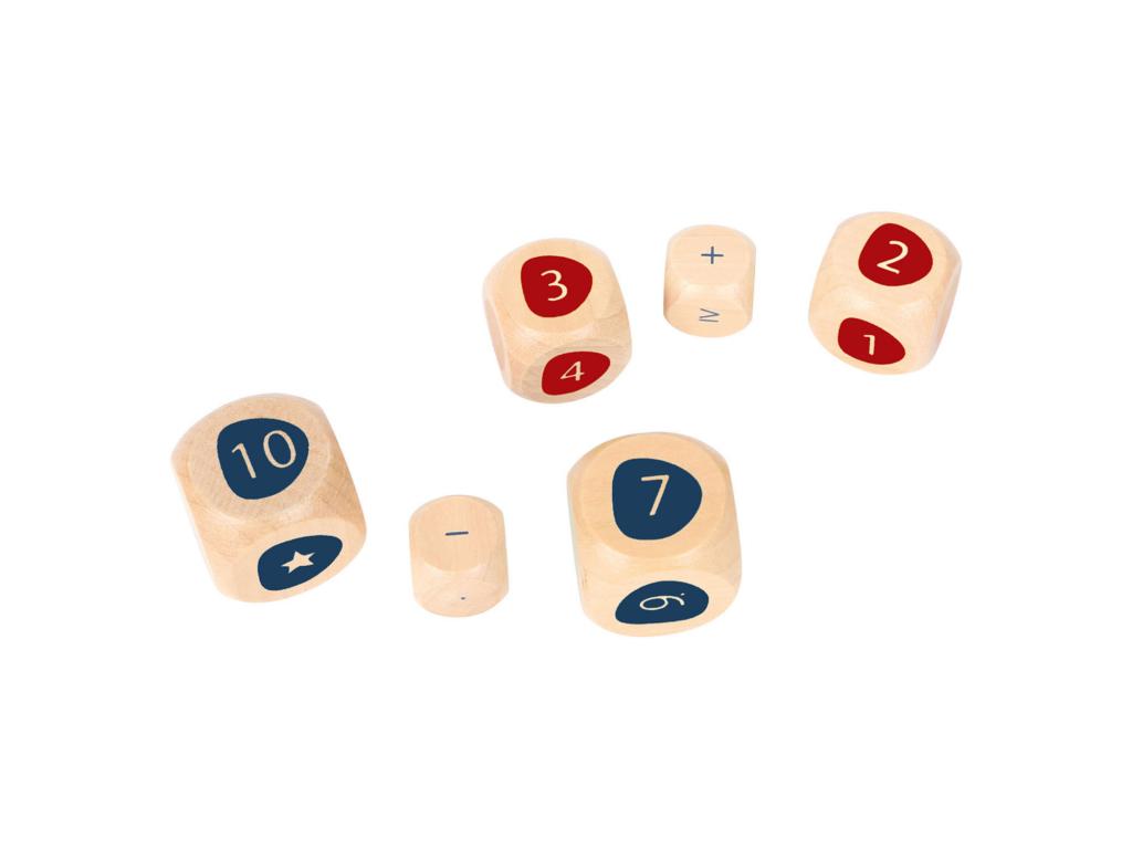 Ez a táska tele van matematikai feladatokkal! Hat darab FSC 100%-os minősítésű fából készült matematikai kockát tartalmaz, amelyekkel számtalan matematikai probléma kombinációját lehet dobni - az egyszerű összeadástól és kivonástól a bonyolultabb matematikai problémákig (pl. szorzás). Minden matematikai probléma véletlenszerűen jelenik meg, hogy a matematika szórakoztató maradjon! A kockák hozzáadásával vagy kivonásával minden játékos eldöntheti, hogy milyen nehéz legyen a matematikai feladványa.