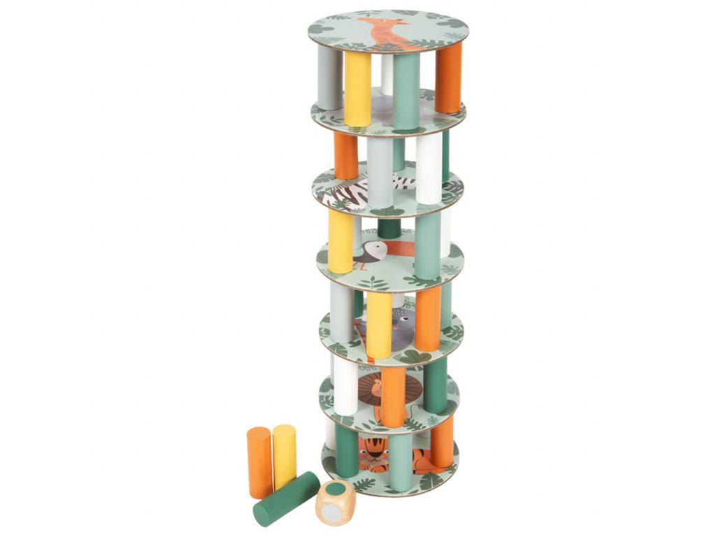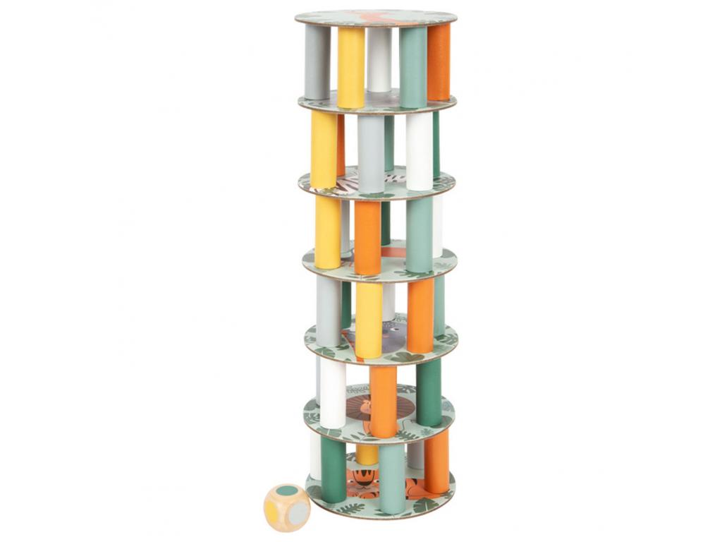 A játék egy torony kirakásával kezdődik. 36 fakockából és 7 kartonból áll. Az alján egy karton alapnak kell lennie, majd 6 fakockának (mindegyik más színű), majd sorban egy karton alap. Ezt addig kell ismételni, amíg a torony elkészül. Ezen a ponton már kész a játék alapja. A játékot a legfiatalabb játékos kezdi. A játékosok felváltva dobják a kockát. A kihúzott szín azt jelenti, hogy a játékosnak pontosan a kocka által jelzett színű blokkot kell húznia. Miután a blokkot sikeresen kihúzták, a következő játékos következik. A játék addig folytatódik, amíg a torony meg nem dől. Az a játékos, aki miatt a torony megdől, veszít - így az összes többi játékos nyer.