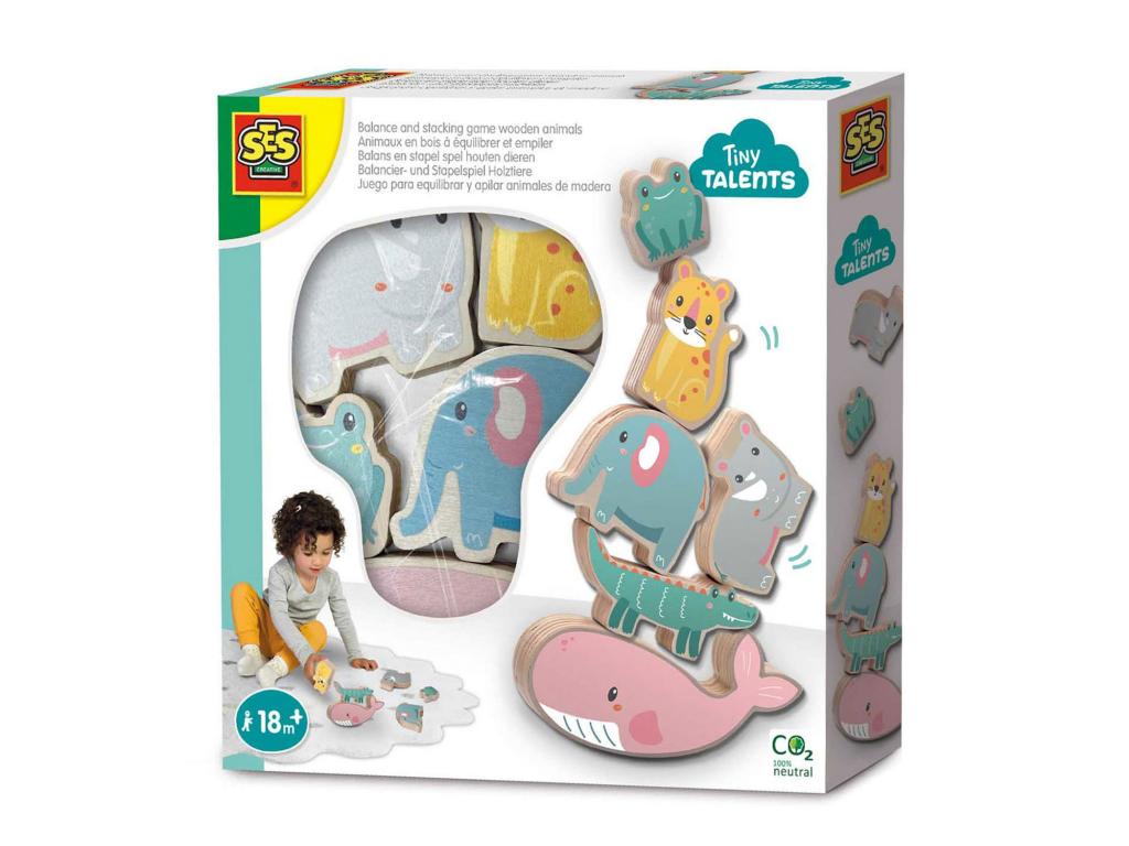SES Tiny Talents - Fa egyensúlyozó játék Állatok
