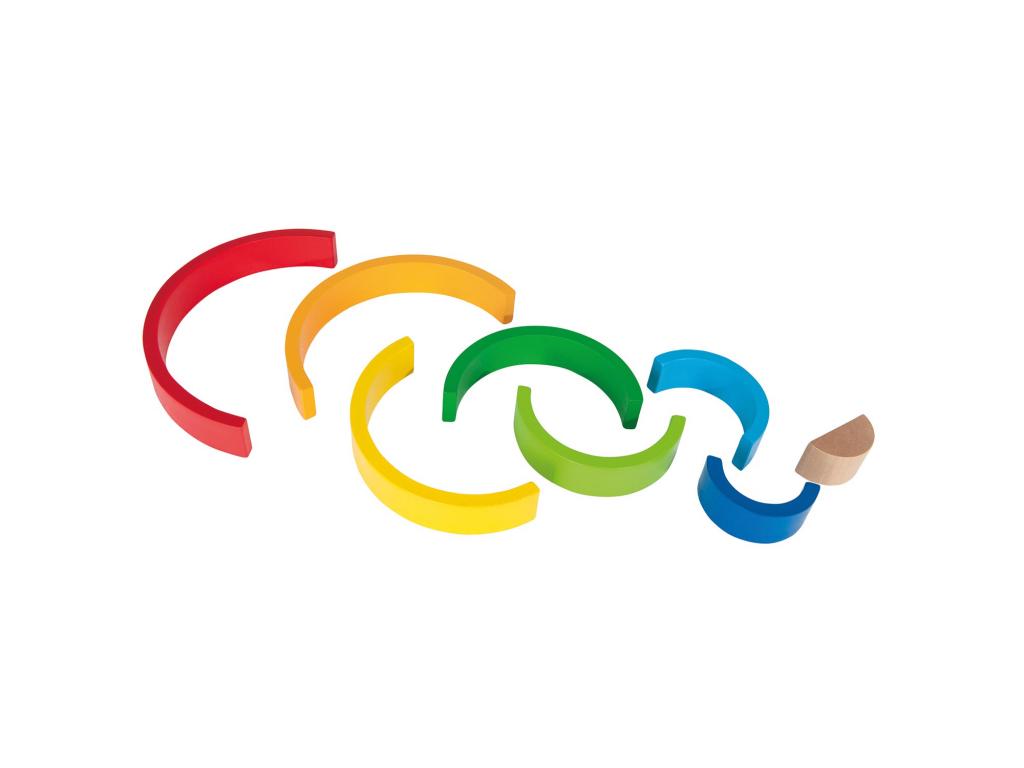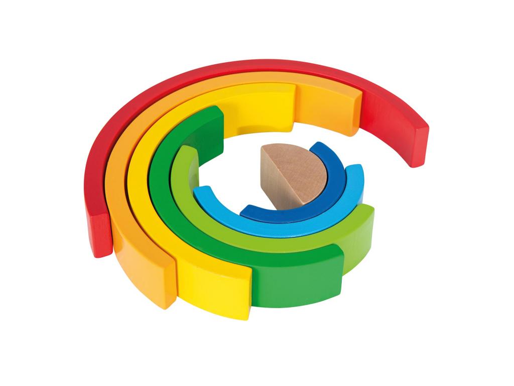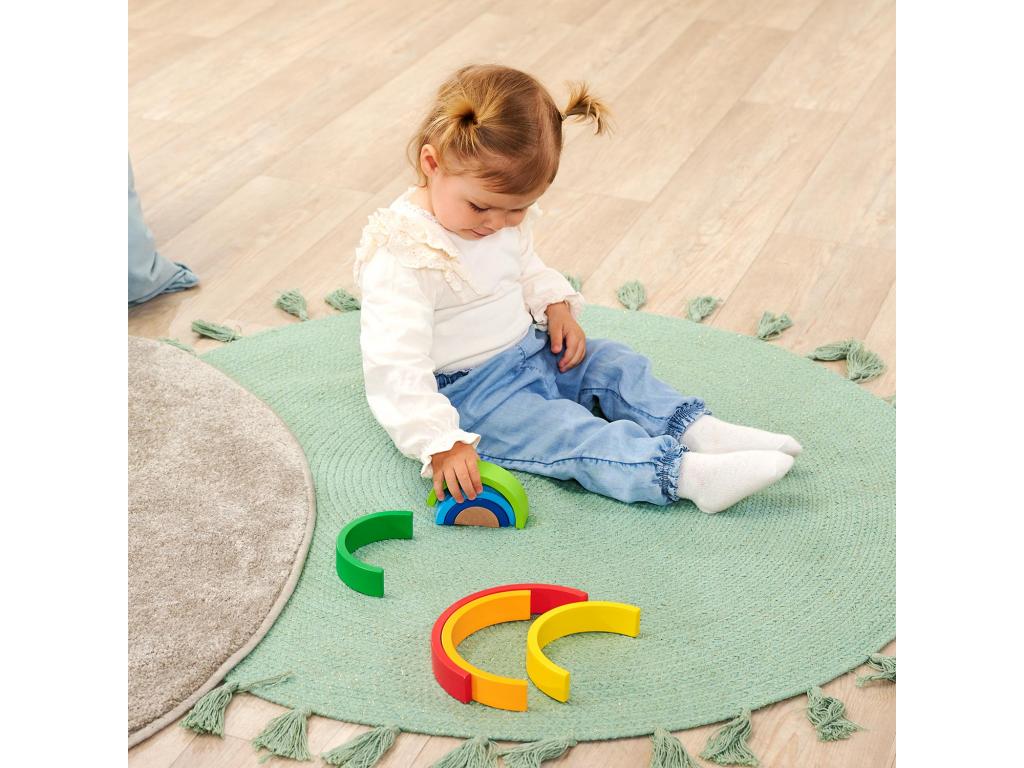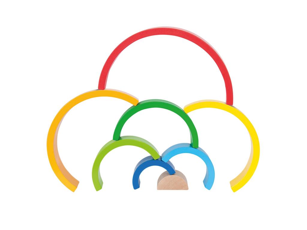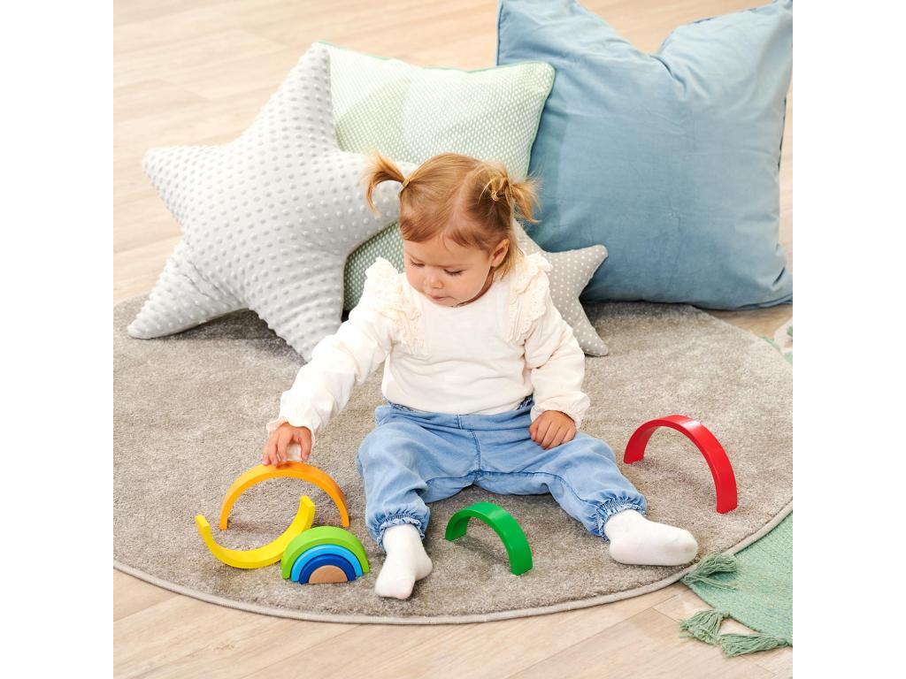 Fából készült rakosgatható szivárvány az Eichhorn cégtől kisgyermekeknek és óvodásoknak. A fából készült rakosgatható szivárvány 8 színes részből áll, amelyek mindegyike más-más méretű és színű. Rakd őket egymásra egy gyönyörű szivárvánnyá, vagy építsd meg velük saját építményeidet! A rakosgatható szivárvány 19,5 centiméter magas, és masszív fából készült. Gyermekeknek 1 éves kortól alkalmas.