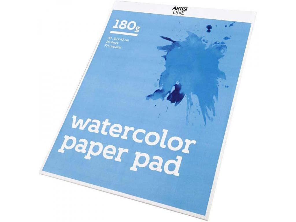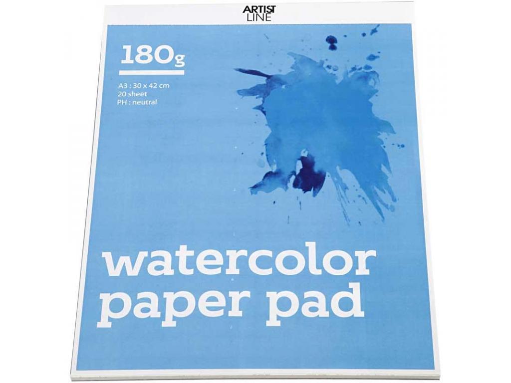 Kiváló minőségű, 100 %-ban cellulózból készült, strukturált felületű akvarellpapírból készült pad. A lap minden oldalán ragasztással van ellátva, hogy megakadályozza a göndörödést. A 180 grammos akvarellpapír A3-as formátumú. A tömb 20 lapot tartalmaz a színezéshez.