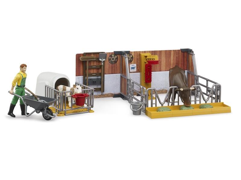 Bruder tehén és borjú istálló farmerrel
