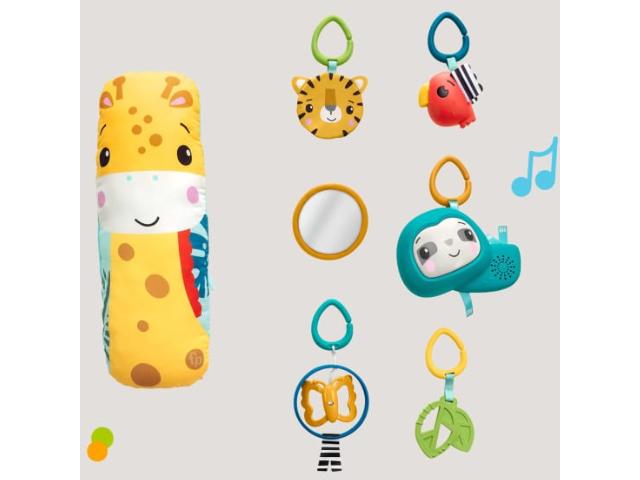 A kisbabák számára fontos az érzékszervek fejlesztése, melyet mókásan is elérhetünk náluk. Ehhez hoztuk el a Fischer-Price játszószőnyegét, mely az esőerdő állataival és növényeinek leveleivel lett díszítve, illetve a rajta lévő különböző kiegészítők is az esőerdők állatait mutatják be. Találhatunk köztük tigrises, pillangós és madaras csörgőt vagy épp rágókát is, valamint egy lajháros lógót, ami zenét tud lejátszani a kicsiknek. A játszószőnyeg három féle képp használható, mely lehet háton való fekvésre, beállítható a keret úgy is, hogy hason fekve csodálhassa a lógó díszeket - ehhez pedig egy zsiráfos pocakpárnát is tartalmaz a csomag -, valamint ha a keretet levesszük, ülve is használható lesz a szőnyeg. Kiváló minőségben készült, így sokáig lehet majd gyermeked társa a játékos tanulások alkalmával.