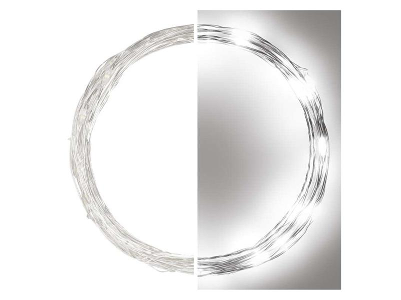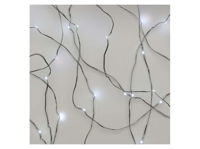 termék: nano lánc, fény színe: hideg fehér, méretek: 4 m, használat: kültéri és beltéri, időzítő, távvezérlő: nem, funkció: világít, tápellátás típusa: AC (hálózati) adapter, forma: nano, LED-ek száma: 40, LED-ek közötti távolság: 10 cm, LED mérete: 3 mm (nano), tápvezeték hossza: 5 m, a fa magasságához: 100 cm, kábel színe: ezüst, fogyasztás: 2,4 W, bemeneti feszültség: 230 V AC, csatlakoztatási lehetőség: nem, védettség: IP44, élettartam: 10 000 óra, anyag: fém, garancia-időszak: 2 év, értékesítési csomagolás: 1 db, doboz