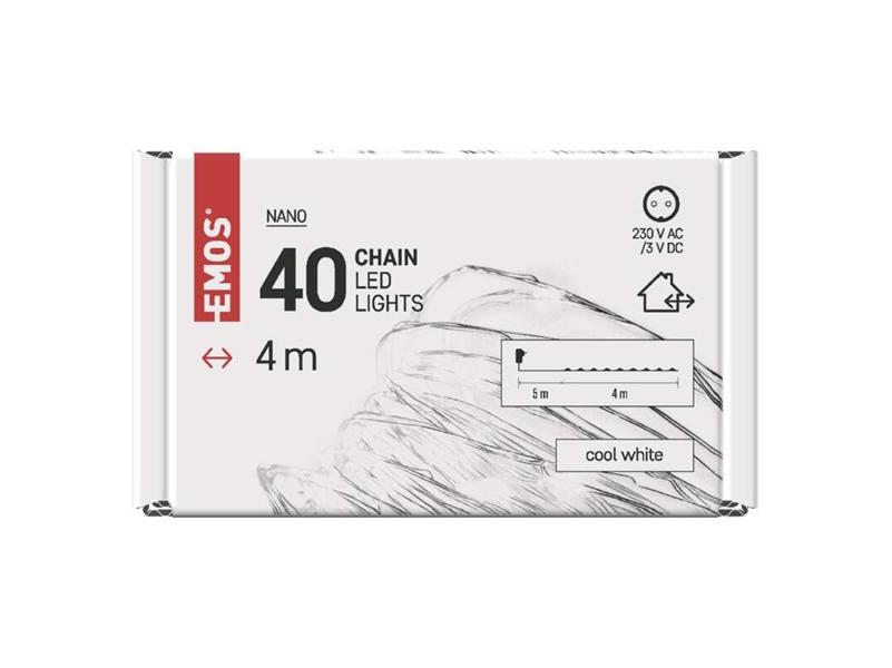 Az Emos D3AC02 LED 4m/40LED/kül-beltéri/időzítős/hideg fehér nano karácsonyi LED fényfüzér leírása: