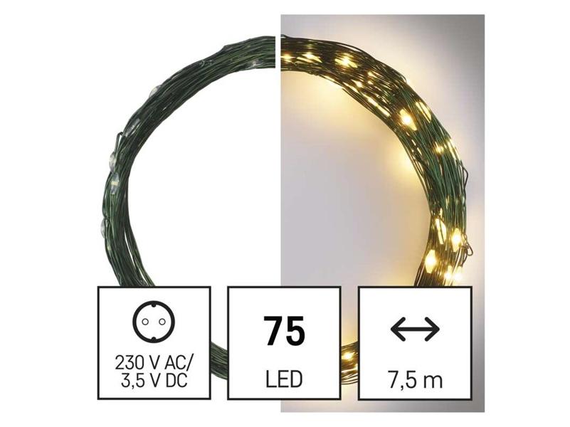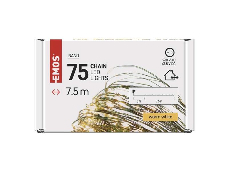Az Emos D3AW04 LED 7,5m/75LED/kül-beltéri/időzítős/meleg fehér nano karácsonyi LED fényfüzér leírása: