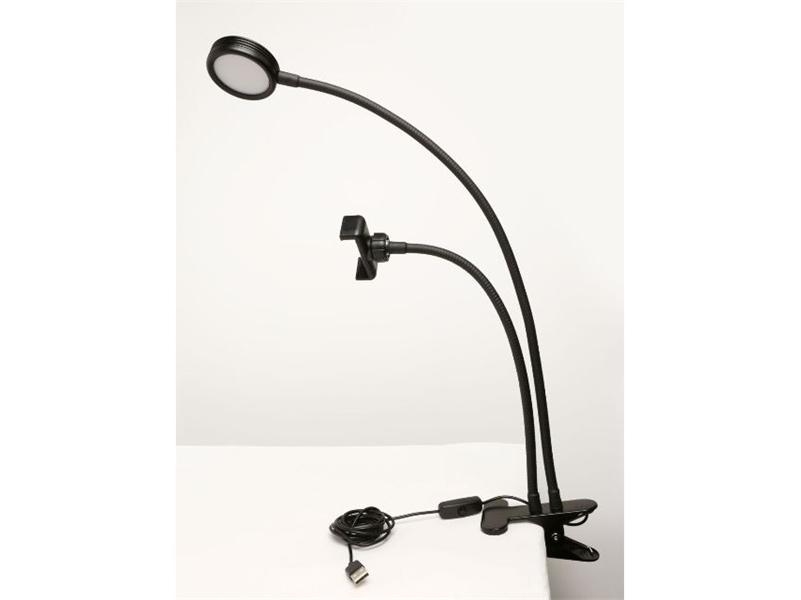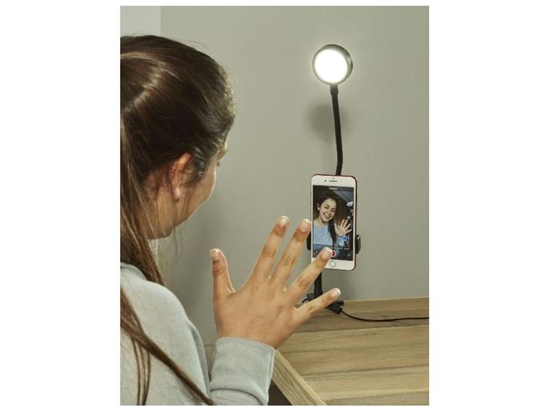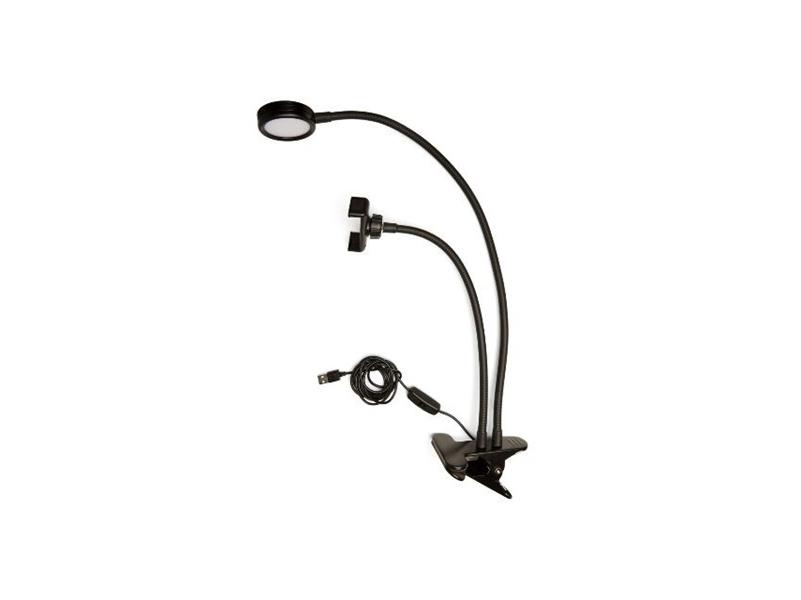 Ez a készlet taralmaz egy 2 az 1-ben univerzális asztalra rögzíthető telefontartót és USB-alapú LED lámpát 3 fényerő fokozattal.