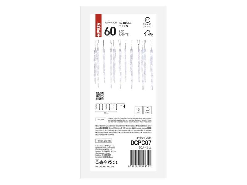 Az Emos DCPC07 3,6m/60LED/kül-beltéri/hideg fehér/jégcsapok karácsonyi LED girland leírása: