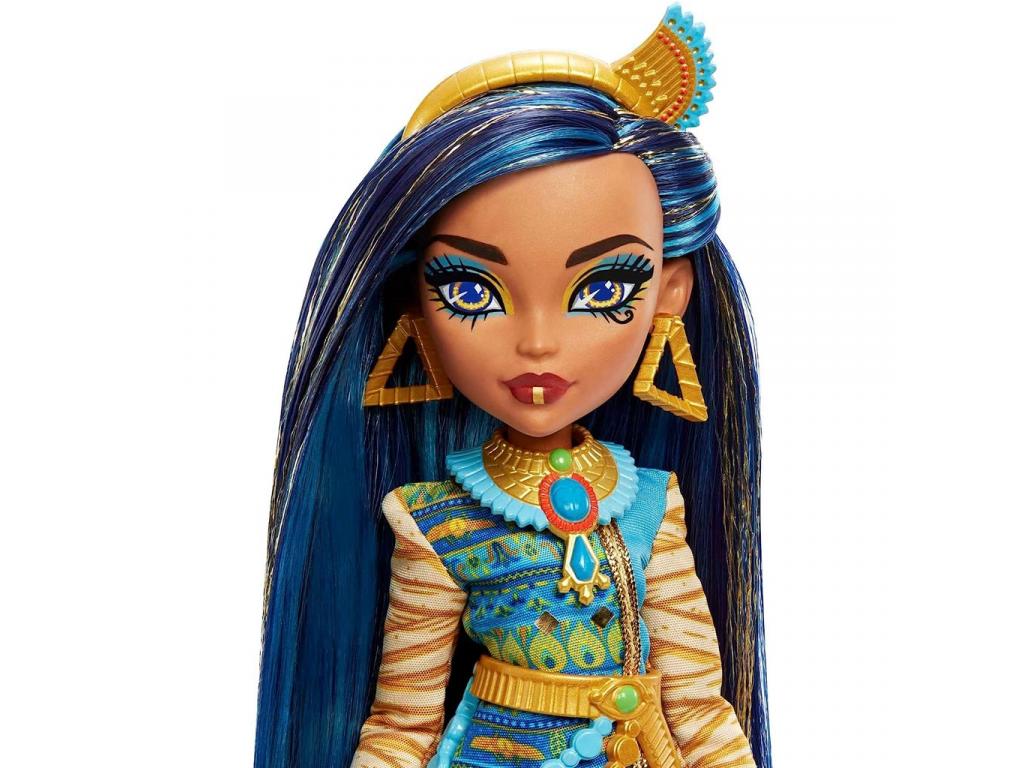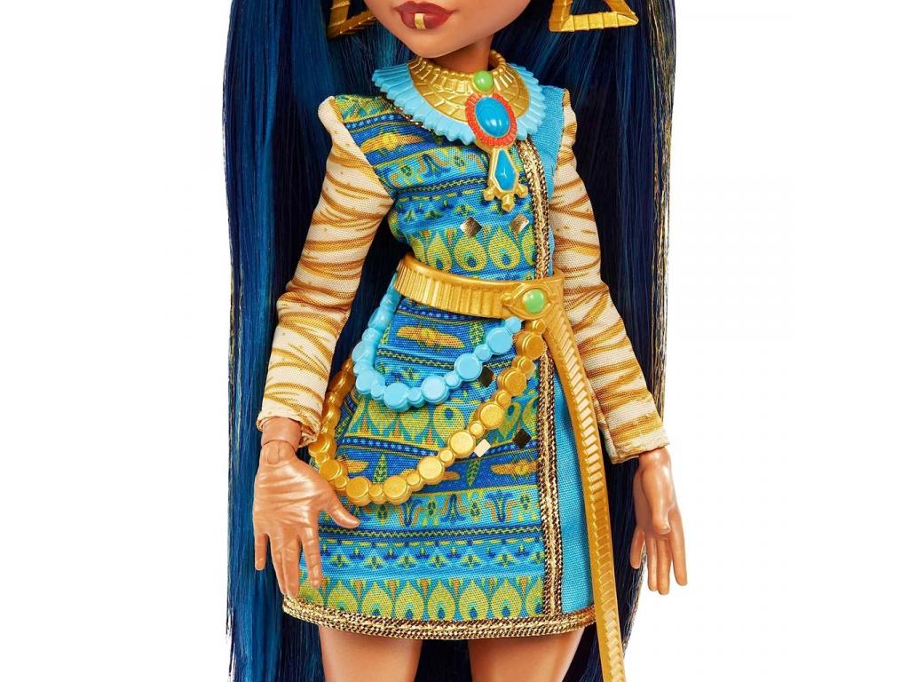 A Monster High Cleo De Nile baba egy különleges és izgalmas játékfigura a Monster High sorozatból. Cleo De Nile a Monster High iskolában egyiptomi királylány szelleme elevenedik meg, és a nevét a híres egyiptomi fáraó, Kleopátra után kapta.