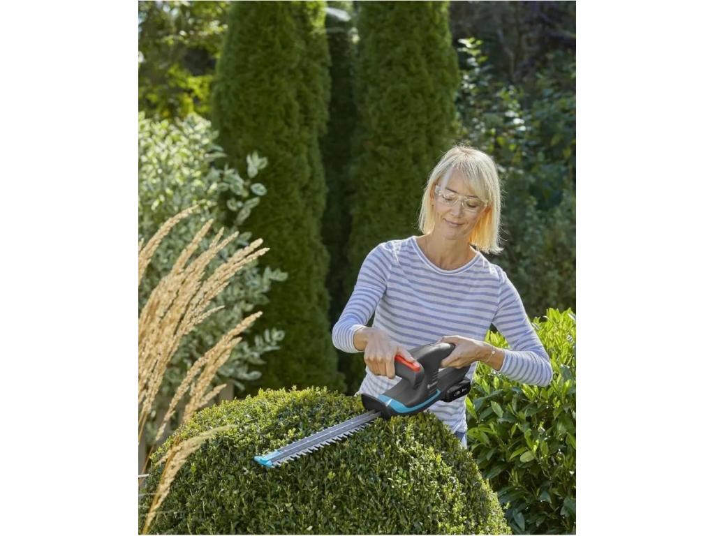 A GARDENA extra könnyű és praktikus akkumulátoros sövénynyírója, az EasyCut 40/18V P4A akkumulátor nélkül, tökéletes a kis és közepes méretű sövényekhez. Az alacsony, akkumulátor nélkül mindössze 1,9 kg-os súlya megkönnyíti a vágást. A sövénynyíró beépített kapcsolóval ellátott ErgoTec markolata ergonomikusan és biztonságosan fekszik a kézben, függetlenül attól, hogy milyen helyzetben használod. A kés hossza 40 cm.