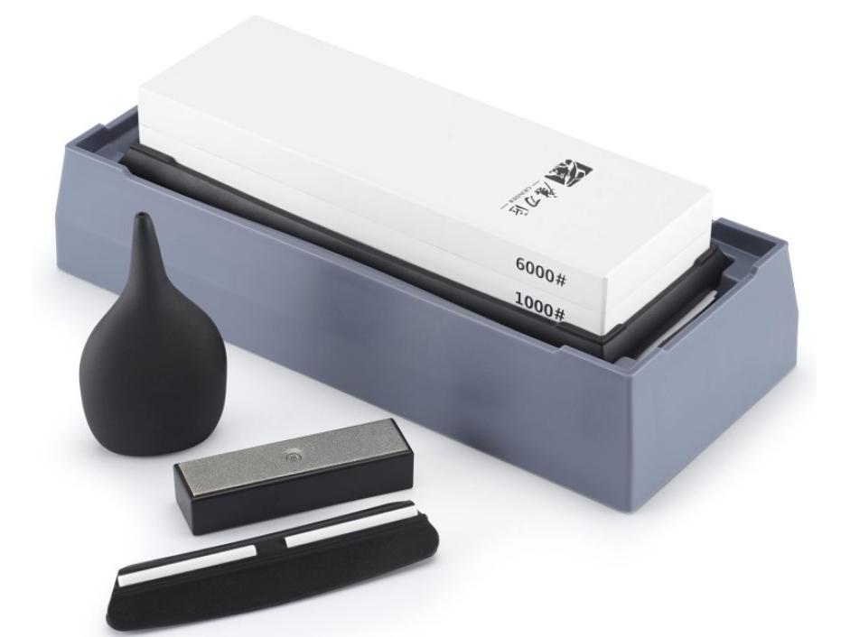 Prémium minőségű alumínium-oxid (korund) alapanyagból gyártott kétoldalú, kombinált fenőkő, kések és vágószerszámok minőségi élezéséhez, élkarbantartásához. Szemcseméret: #1000/6000 - Finom/Ultra finom Élezőfelület mérete: 18 * 6 cm Tartozékok: műanyag állvány, csúszásgátló gumitalp, gyémánt fenőkőtisztító, élszögtartó, pipetta