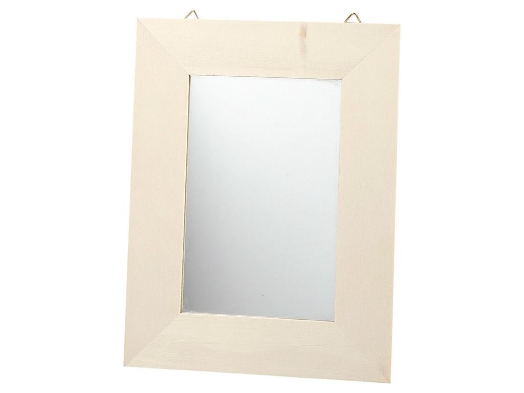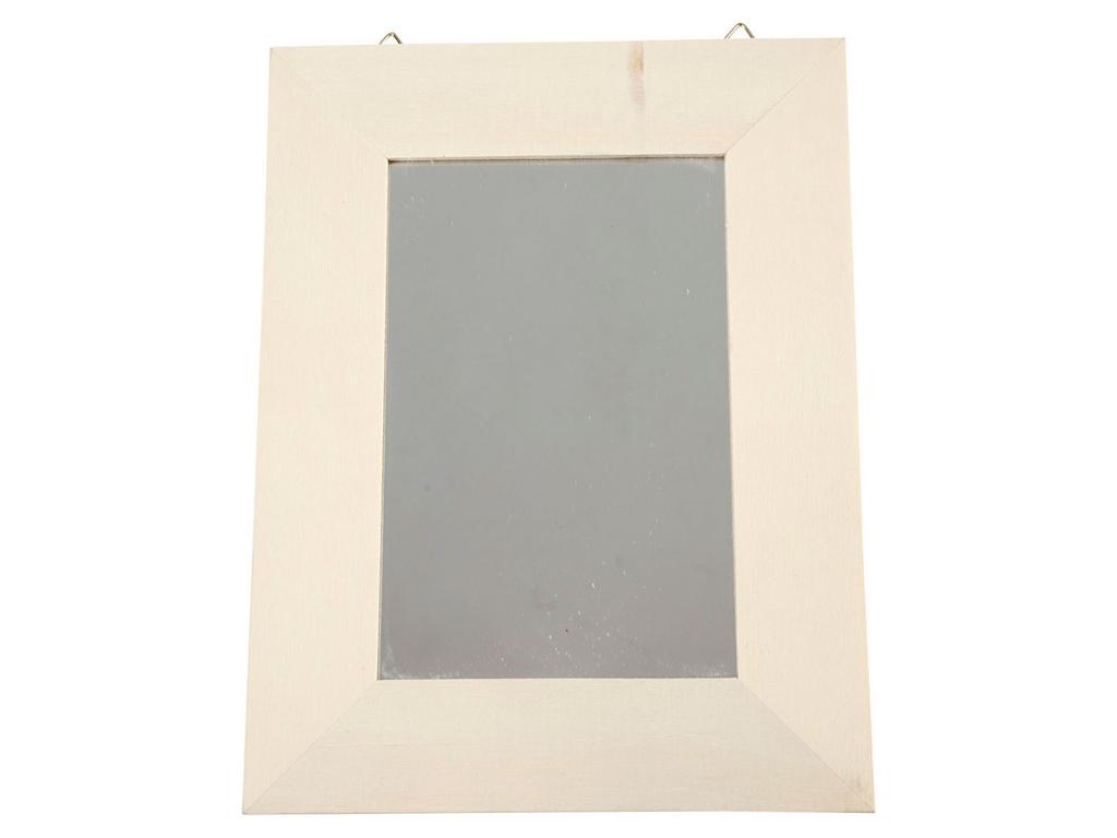 Ez a négyzet alakú tükör világos fakerettel rendelkezik, amely igény szerint díszíthető. Variáció lehetséges, hiszen a tükör helyettesíthető fotóval is! Függesztőszemeket is tartalmaz. Méretek: Méretek: 20,8 x 15,9 centiméter és 0,6 centiméter vastag. A kivágás 9,2 x 14,2 centiméteres.