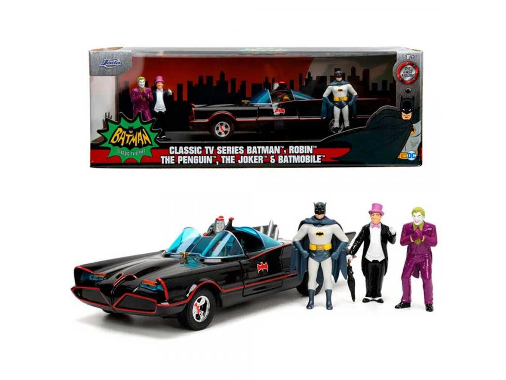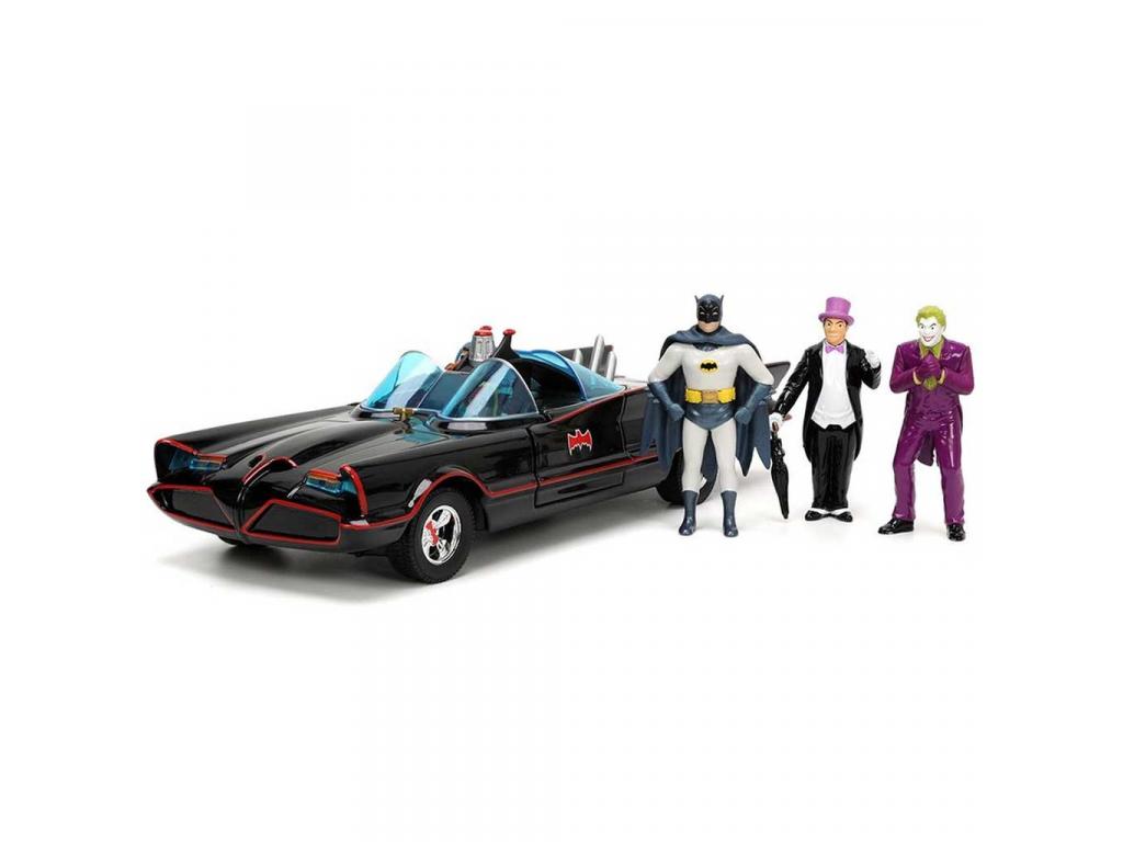A Batman: 1966 Classic Batmobil fém prémium autómodell 4db akciófigurával 1/24-es méretarány leírása: