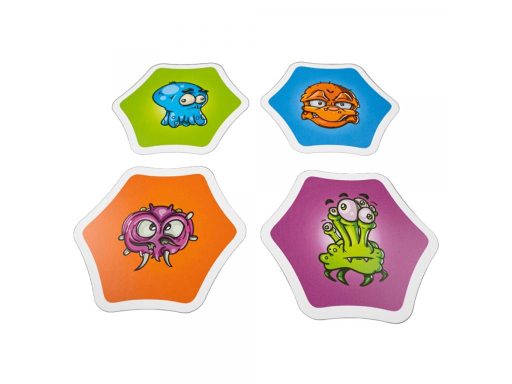 - Ha három azonos háttérszínű szörnyet találsz - adj mind a három szörnykupacot tetszés szerint 1, 2 vagy 3 játékosnak!