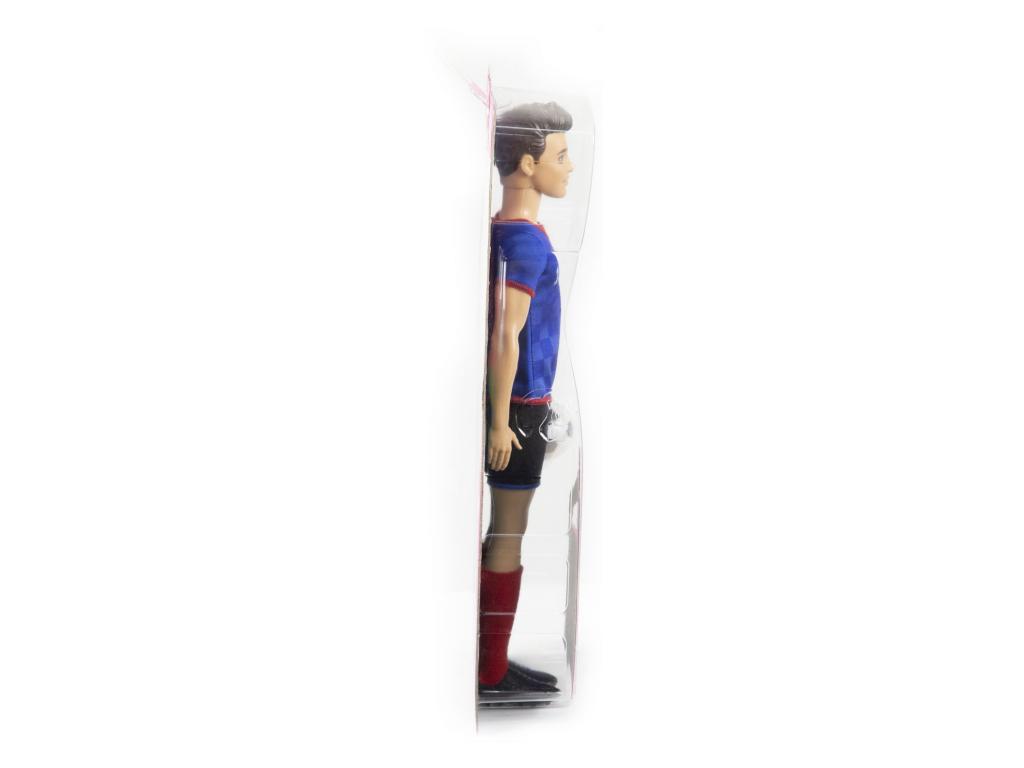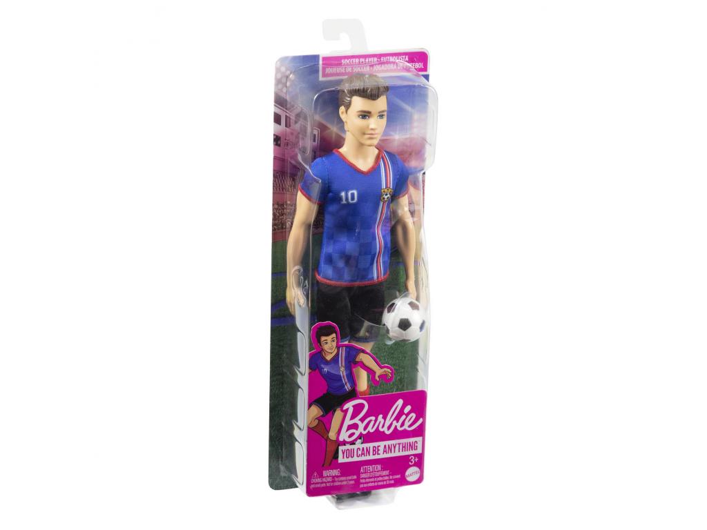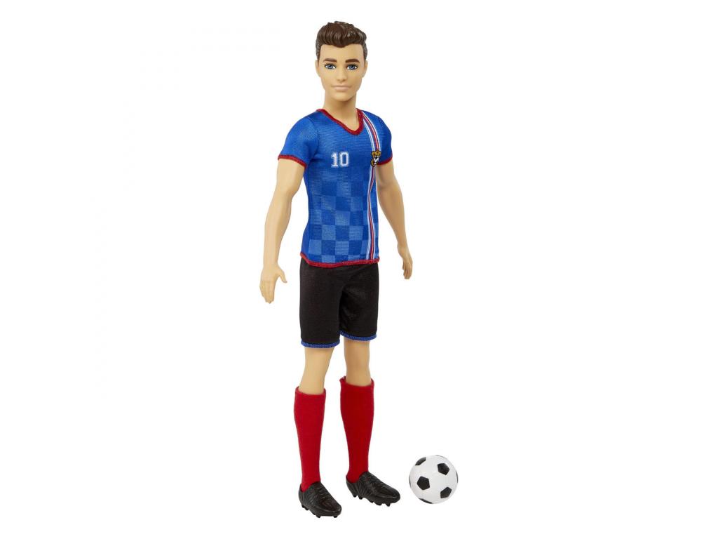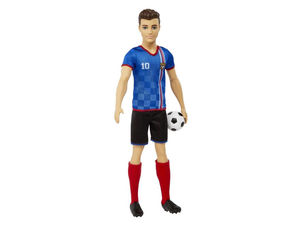 Készülj fel a gyerekek egyik kedvenc sportágának ölelésére ezzel a Barbie focista Kennel! A focista Ken (29 cm) felszerelését a világszerte népszerű színkombináció ihlette. Egy kék csíkos mezből, a '10-es számmal és a csapat címerével, valamint fekete rövidnadrágból, szegecses cipőből, piros zokniból és cipőből áll. A focista Ken rövid, divatos frizurával rendelkezik és egy focilabda van nála. A baba nem tud egyedül állni. A színek és a díszítések változhatnak. 3 éves kortól.
