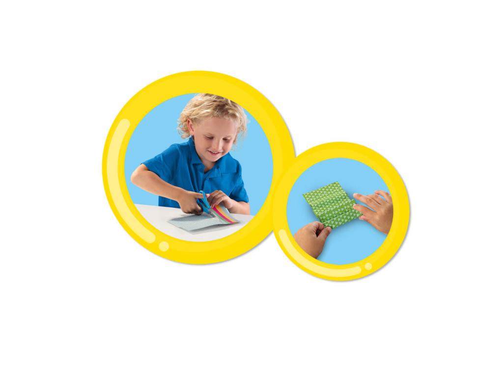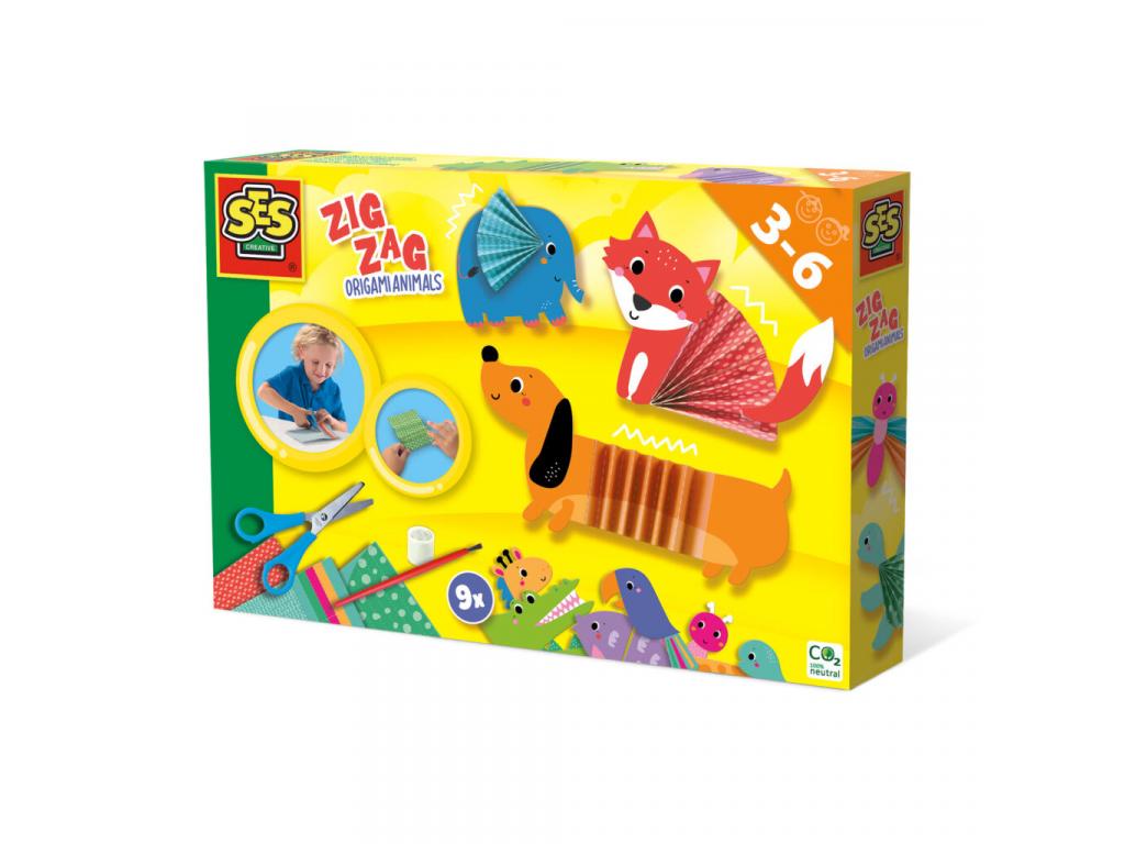 Állati origami szórakozás! Ez a cikk-cakk origami állatkészlet a SES Creative-tól felgyorsítja a kreatív szíveket, és különösen edzi a kézügyességet. Kilenc különböző állat ölt alakot varázsütésre az origami hajtogatási technika segítségével. Akár erős elefánt, akár pimasz róka a papírt lépésről lépésre összehajtják és az állatformákra ragasztják. Így születnek fokozatosan nagyszerű, színes origami figurák. A ragasztóval könnyen összeragaszthatod azokat a területeket, amelyeknek össze kell tapadniuk. Minden a helyén marad és jól néz ki. Természetesen pontos utasítások magyarázzák el az egyes lépéseket így semmi sem történhet rosszul. Nos, akkor melegítse fel ujjait, és kezdődhet a hajtogatási móka!