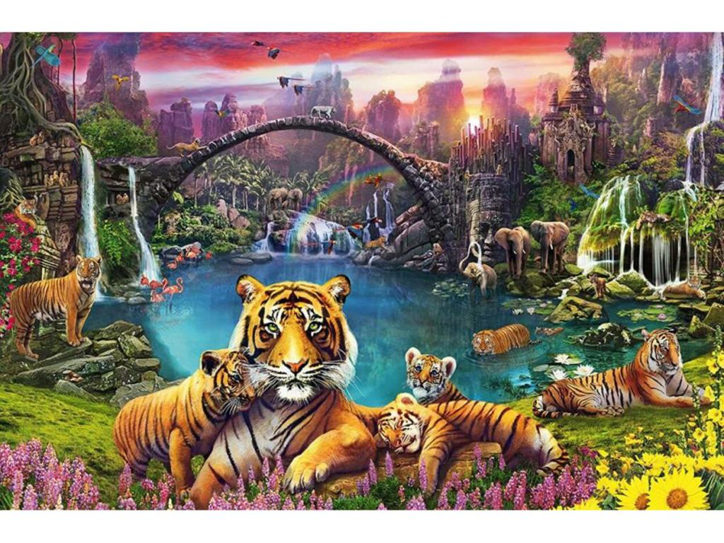 A Ravensburger neve már hosszú évtizedek óta ismert az egész világon, mint a legkiválóbb minőségű puzzle játékok készítője. A kiváló termékminőség mellett a 2D-s és 3D-s puzzle kirakók rendkívül széles választékát nyújtja, mind a képi megoldások sokféleségében, mind pedig a puzzle részek darabszáma tekintetében. A Ravensburger 3000 db-os puzzle - című képén a tigrisek világát láthatjuk a paradicsomban. Kirakott kép mérete: 121 cm x 80 cm.