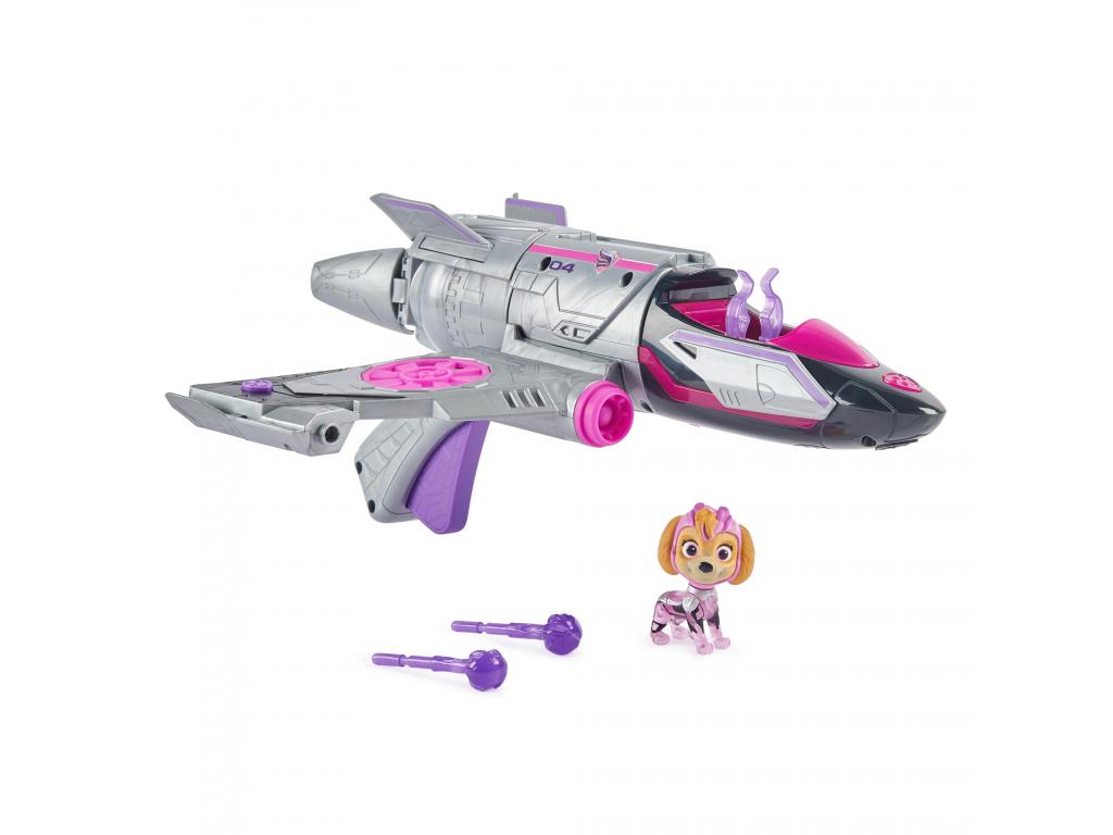 Ez a Super Pup témájú, deluxe játék vadászrepülőgép nagyszerű ajándék azoknak a gyerekeknek, akik szeretik a Mnsc Őrjárat filmet (az elemekkel együtt). Skye a Mancs Őrjárat Mozi rózsaszín egyenruháját viseli, áttetsző részekkel és speciális sisakkal. Csatlakoztassa a gépe pilótafülkéjéhez, hogy megvilágítsa Skye testének és a repülőgépének több részét, nézze, ahogy mancsai világítanak, és zenét és hangeffektusokat hallgathat.