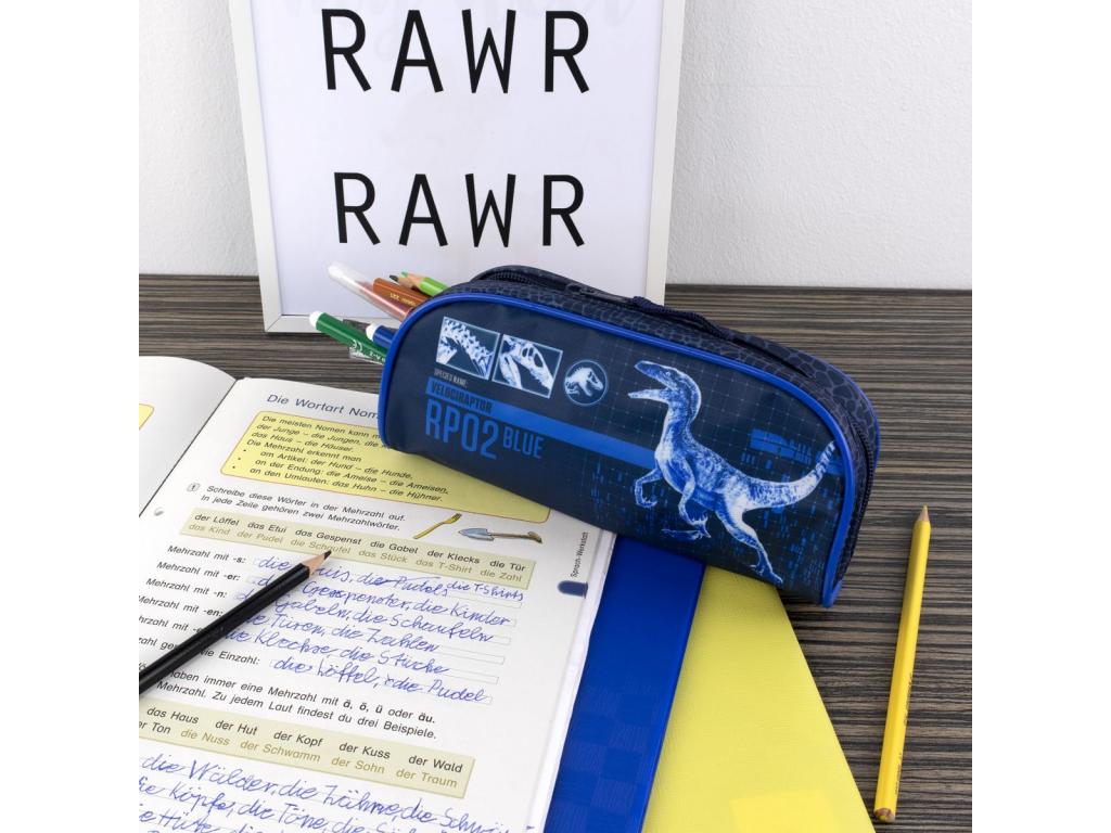 Cipzáras tolltartó Jurassic world motívummal, egy nagy rekesszel az összes íróeszköz számára.