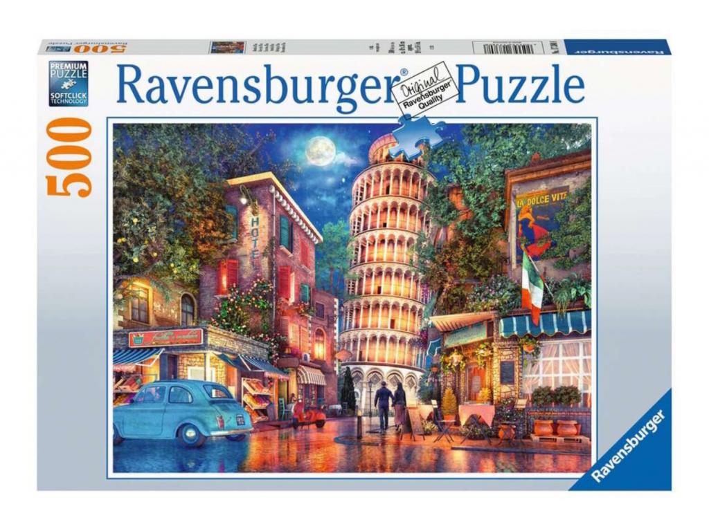 A Ravensburger neve már hosszú évtizedek óta ismert az egész világon, mint a legkiválóbb minőségű puzzle játékok készítője. A kiváló termékminőség mellett a 2D-s és 3D-s puzzle kirakók rendkívül széles választékát nyújtja, mind a képi megoldások sokféleségében, mind pedig a puzzle részek darabszáma tekintetében. A Ravensburger 500 db-os puzzle - Pisa utcáin képén az utazók körében is népszerű olasz város egy hangulatos utcajelenete elevenedik meg, háttérben a leghíresebb látnivalójával, a Világörökségi listán is szereplő műemlékkel, a Pisai ferdetorony épületével. Kirakott kép mérete: 49 cm x 36 cm.