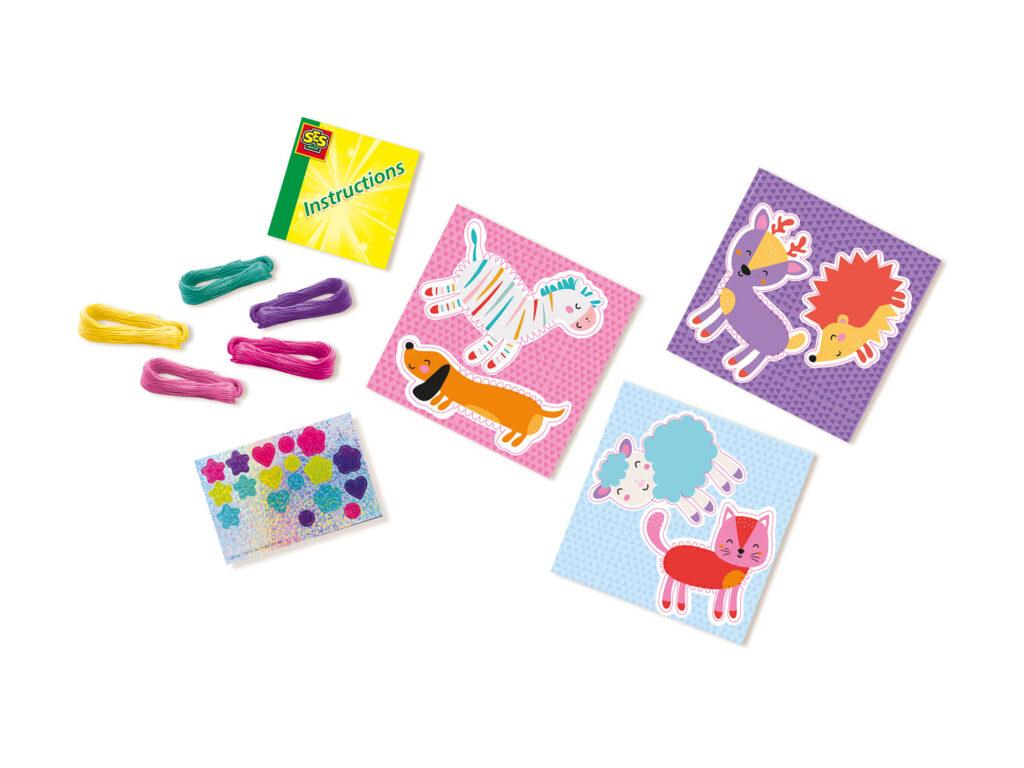 A csomag tartalma: 6 állatos forma, 5 különböző színű cérna, matricák, használati utasítás.