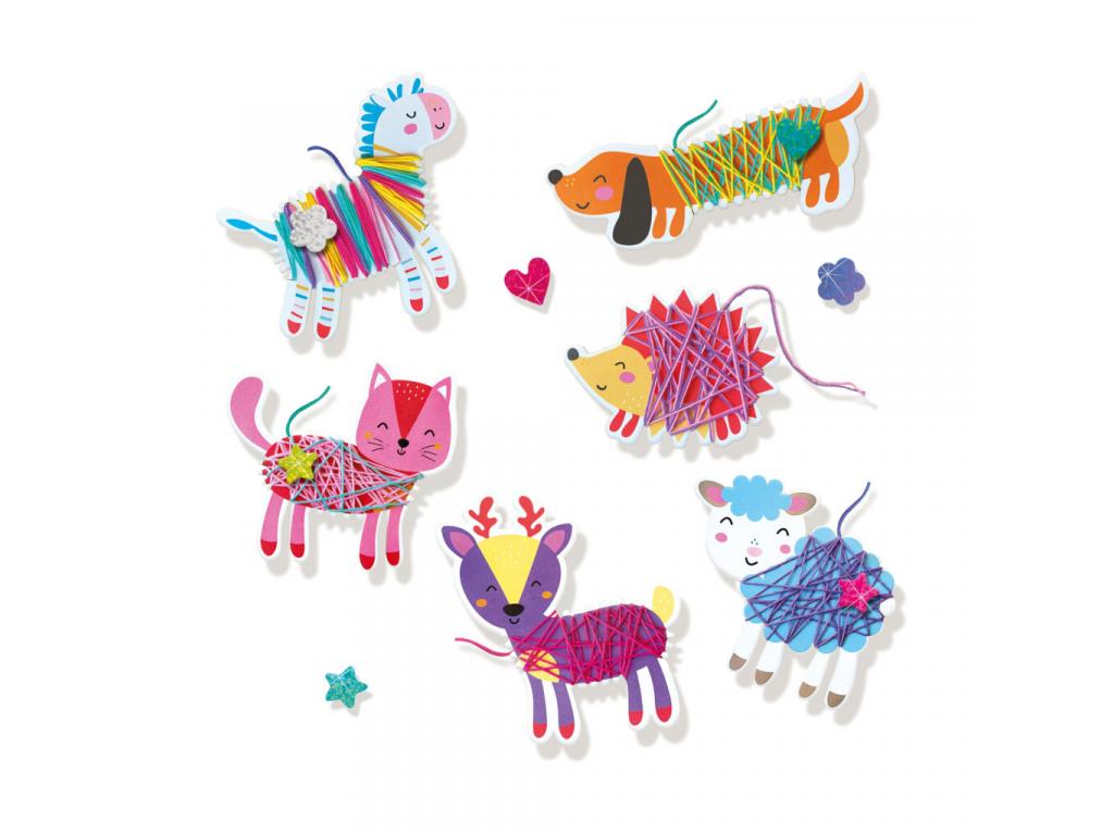 Brr hideg van! Ezek az állatok fáznak. Adja meg nekik a kabátjukat az öt színű cérnával. Csomagolja be a juhokat extra gyapjúba, és adjon a sündisznónak fényes bundát. Amikor az állatok egy kicsit felmelegedtek, díszítheti őket a csillogó matricákkal.