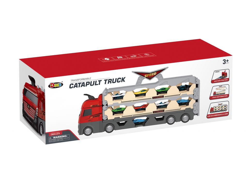 Ez a nagyméretű, masszív felépítésű, háromszintes katapulttal ellátott autókat szállító kamion remek szórakozást nyújt minden kisfiú számára.