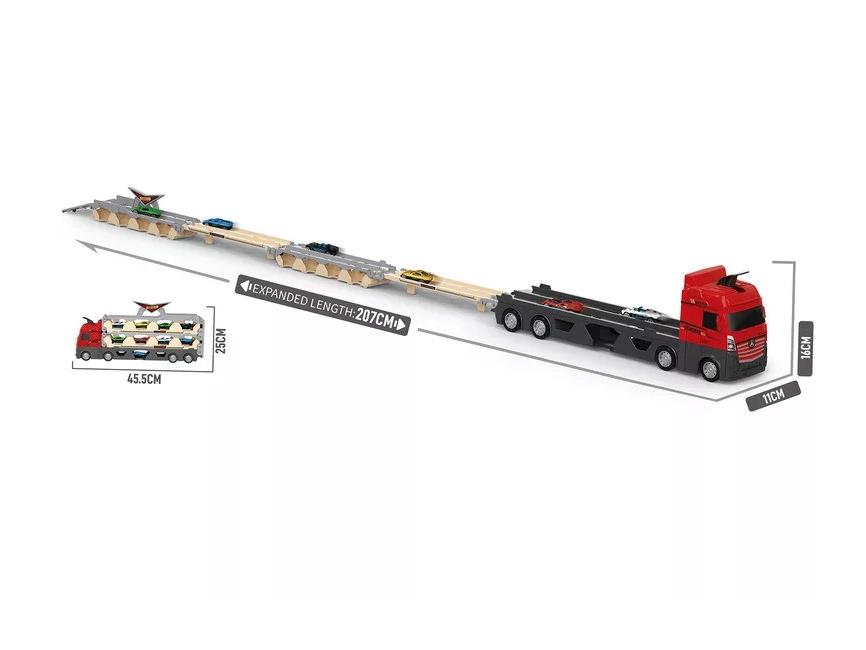 A jármű tetején kényelmes hordozó fogantyú található, így bárhová magával viheti az autót. A járműnak 3 szintje van, ahol több autó tárolható (a készlet 6 autót tartalmaz).